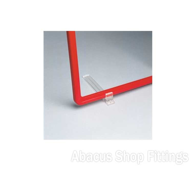 Angled clear flat tablestand for displaying plastic frames at a 15deg angle. Fits all sizes of frames and displays them landscape or portrait. It is recommended that you use two stands per frame.
